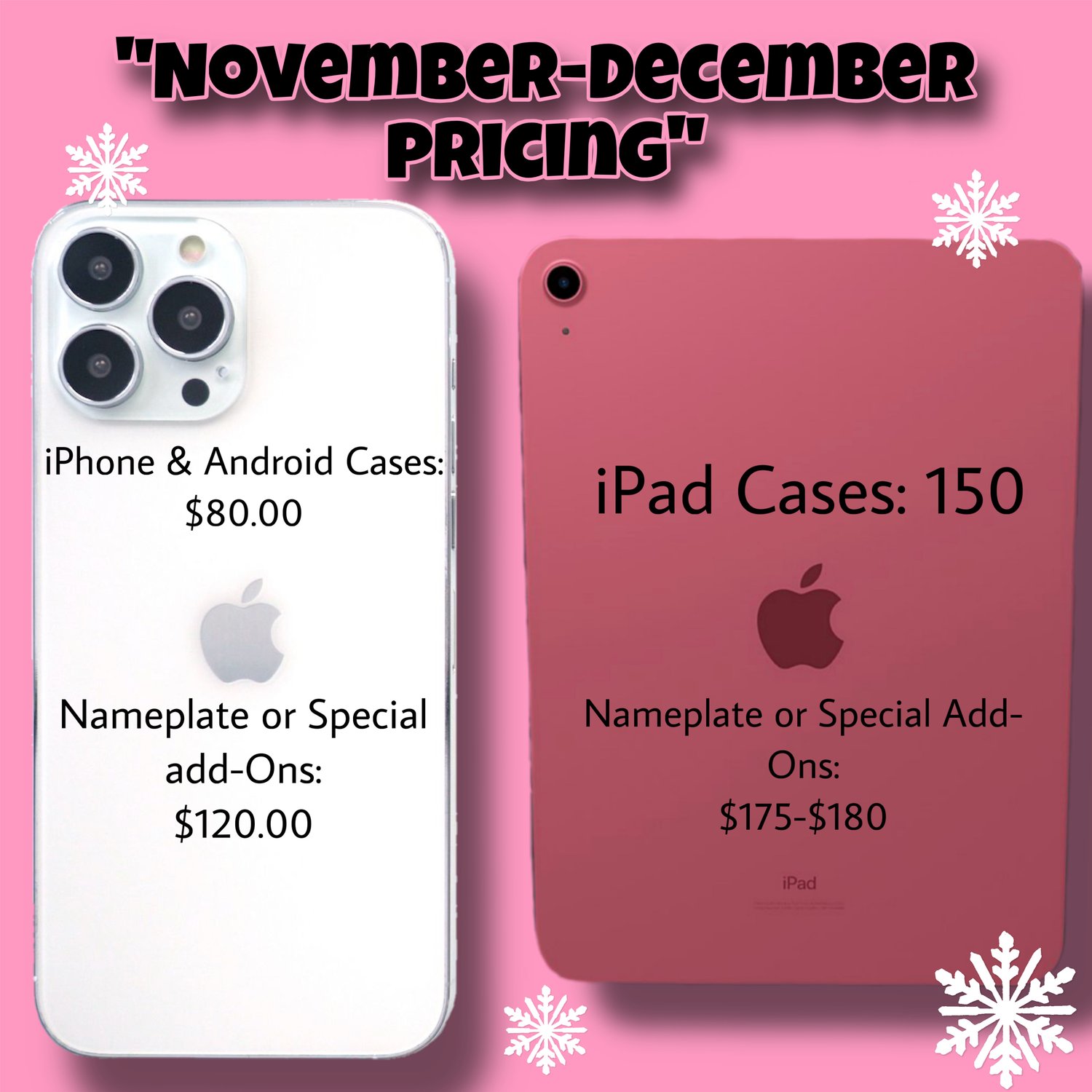 Custom Cases w/ name plate & color coordinating bling & your choice of pieces. *Note: Due to ordering the name plate it could take up to 4-6 weeks to receive your case.